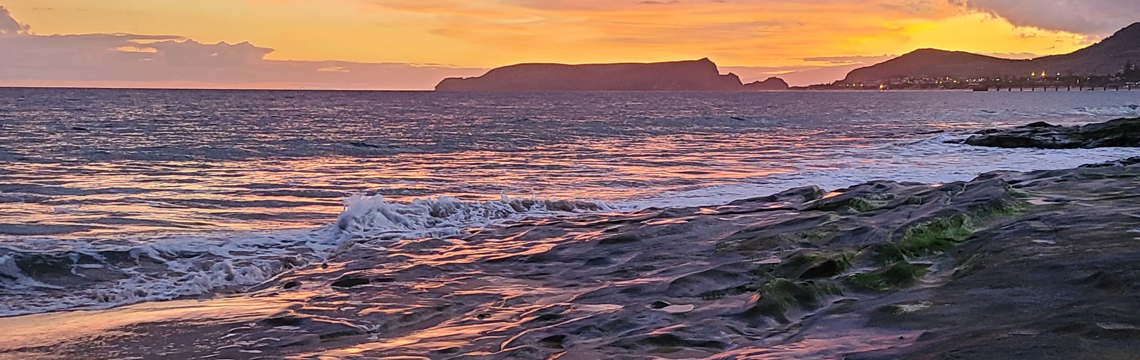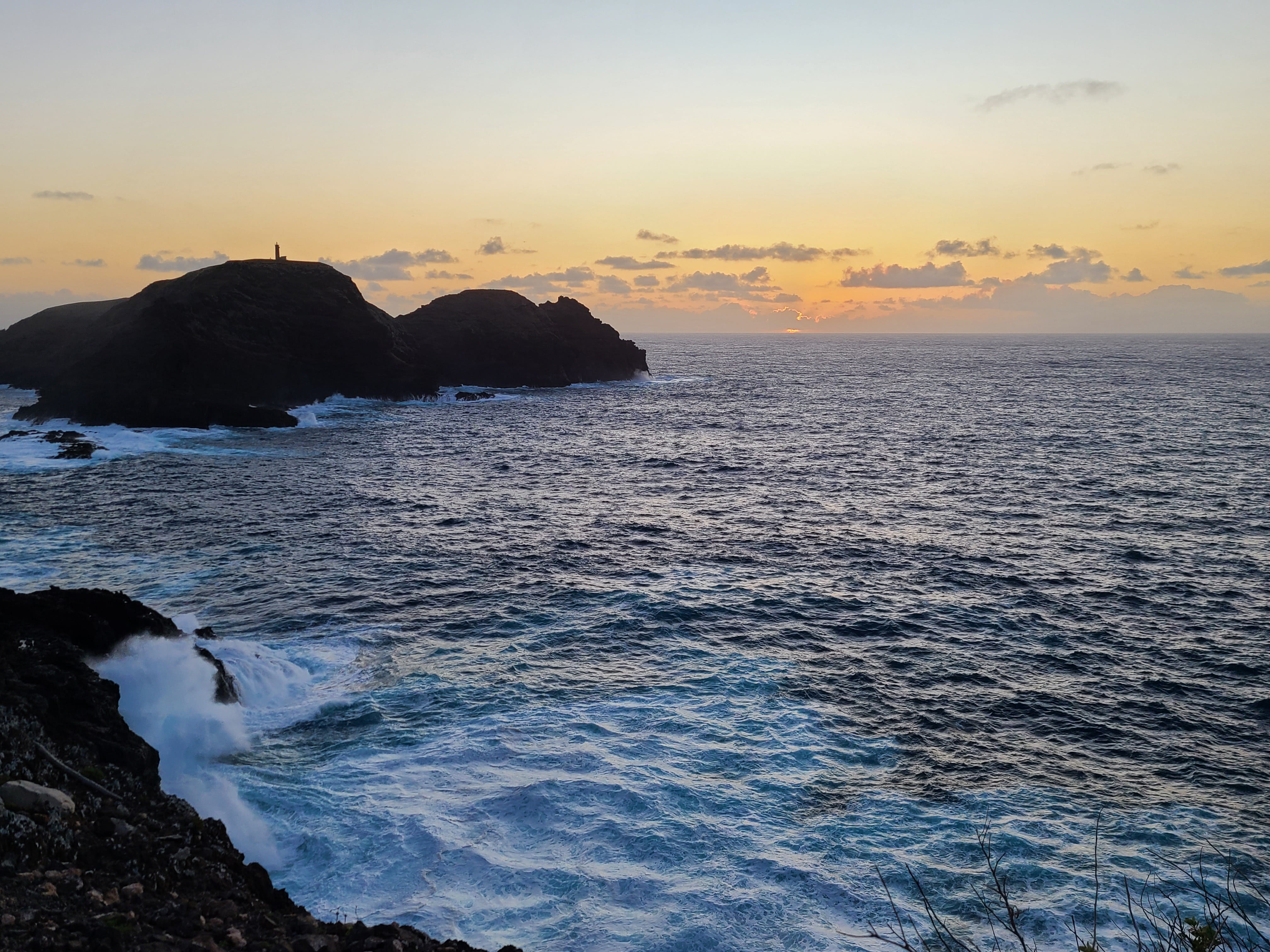 We hiked up the last bit of hill and gasped at the scene below. Waves frothed in slow motion against the rocks of the small “Iron Islet” with a deep booming sound slightly delayed by the distance. The lighthouse was like a cake decoration on the flat top of the islet as the sun went down through clouds that hovered at the horizon. Madeira, thirty miles to the southwest was invisible behind the cloud bank. It felt as if we had reached the end of the world. If we got in our boat and headed due west from Porto Santo, we would sail three thousand miles before hitting land in Wilmington, North Carolina. Unlike many people, I found this deeply comforting.